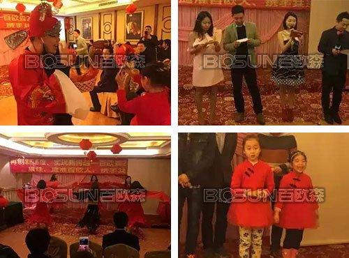 2016年年會狂歡于當天20點準時開始。每一位到場朋友的臉上都洋溢著難以掩飾的幸福笑容,此次年會更是不斷出現(xiàn)優(yōu)異節(jié)目,引來持續(xù)不停的吶喊聲,為全場帶來一次又一次的高潮。2016年將是傳承夢想不懈求索的一年;也是繼往開來搶抓機遇的一年,我們堅信:百歐森一定能夠銳意進取、整裝待發(fā)、挑戰(zhàn)極限,為更好的未來而繼續(xù)奮斗!