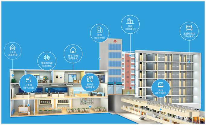 百歐森室內空氣消毒殺菌凈化解決方案可根據不同場所定制殺滅空氣中的細菌病毒、甲醛、PM2.5等污染物,百歐森給你一個室內“藍色天空”