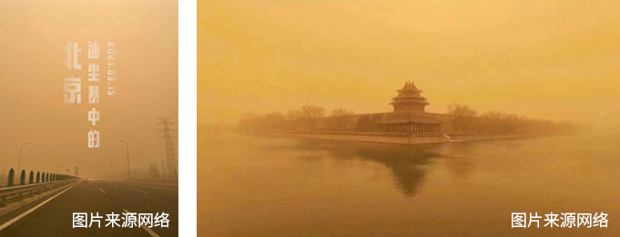 3月15日,北京遭遇沙塵天氣。故宮午門、角樓、北海白塔在漫天黃沙中若隱若現, 仿佛蒙上了一層橙黃“濾鏡”。