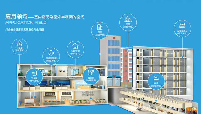 百歐森可專門針對(duì)寫字樓、商業(yè)綜合體、住宅、會(huì)展中心、學(xué)校、銀行、機(jī)場(chǎng)、醫(yī)院、酒店、實(shí)驗(yàn)室、垃圾房等場(chǎng)所的空氣污染問(wèn)題,主要針對(duì)密閉或半密閉的室內(nèi)空間。定制智能化新風(fēng)系統(tǒng)專屬解決方案,進(jìn)行殺菌消毒、甲醛處理、PM2.5處理、垃圾房惡臭處理和油煙凈化處理,有效控制化學(xué)污染、生物污染和二氧化碳超標(biāo)等問(wèn)題。